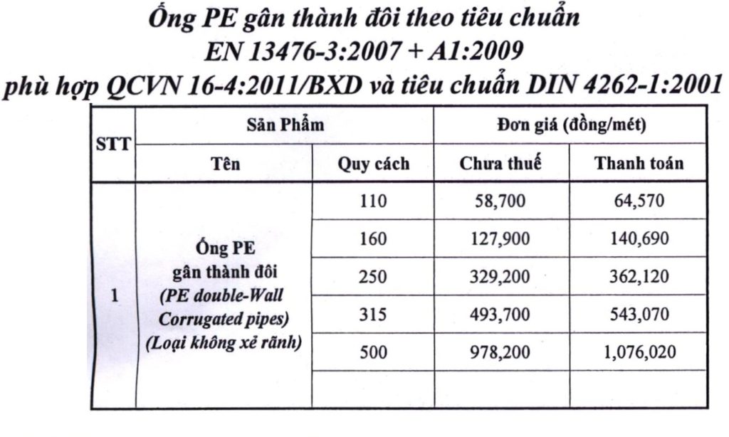 Ngoài ra, Công ty cổ phần sản xuất và Đầu tư Phát triển Rạng Đông thực hiên dịch vụ giao hàng miễn phí đến tận chân công trình và thực hiện việc thu lại hàng sử dụng dư thừa cho chủ công trình sử dụng sản phẩm của Công ty Rạng Đông. Nhờ dịch vụ nêu trên nên đã tạo được lòng tin nơi khách hàng, chủ công trình tiết kiệm được rất nhiều thời gian cũng như tiền bạc khi sử dụng sản phẩm, dịch vụ của Công ty Rạng Đông. Công ty cổ phần sản xuất và Đầu tư Phát triển Rạng Đông luôn cung cấp hàng hóa theo giá niêm yết của Công ty nhựa Bình Minh. Sau đây là giá niêm yết của Công ty Bình Minh từ 01/01/2016 để Quý khách hàng tam khảo:
