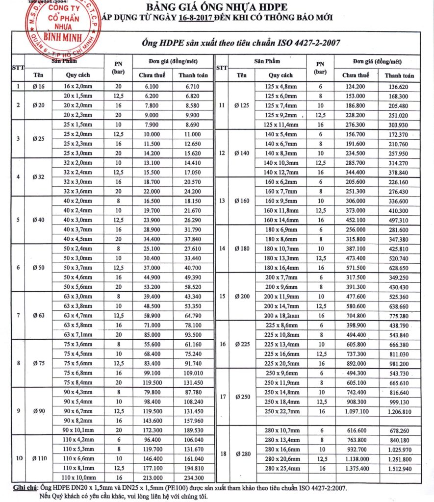 Ngoài ra, Công ty cổ phần sản xuất và Đầu tư Phát triển Rạng Đông thực hiên dịch vụ giao hàng miễn phí đến tận chân công trình và thực hiện việc thu lại hàng sử dụng dư thừa cho chủ công trình sử dụng sản phẩm của Công ty Rạng Đông. Nhờ dịch vụ nêu trên nên đã tạo được lòng tin nơi khách hàng, chủ công trình tiết kiệm được rất nhiều thời gian cũng như tiền bạc khi sử dụng sản phẩm, dịch vụ của Công ty Rạng Đông. Công ty cổ phần sản xuất và Đầu tư Phát triển Rạng Đông luôn cung cấp hàng hóa theo giá niêm yết của Công ty nhựa Bình Minh. Sau đây là giá niêm yết của Công ty Bình Minh từ 01/01/2016 để Quý khách hàng tam khảo: